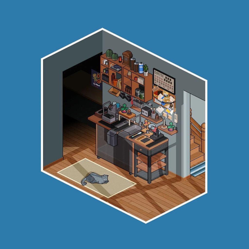 The first thing I was reminded of when I saw these juicy images was the work of the 1997 German pixel art team eBoy. That classical isometric style is hard to mistake. But this work feels more subtle.